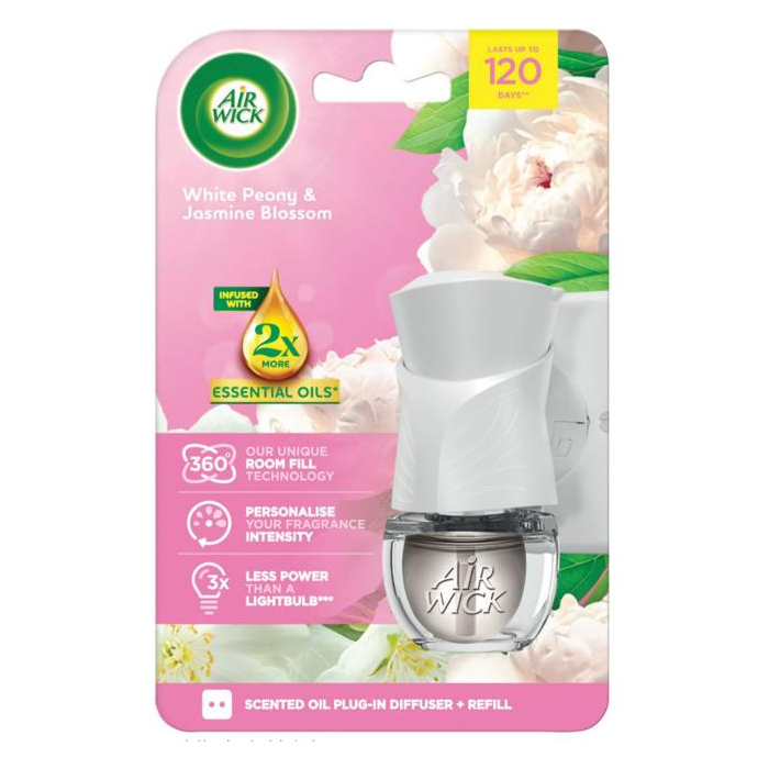 Air Wick elektrický osviežovač + náplň 19 ml Biele kvety Pivónia