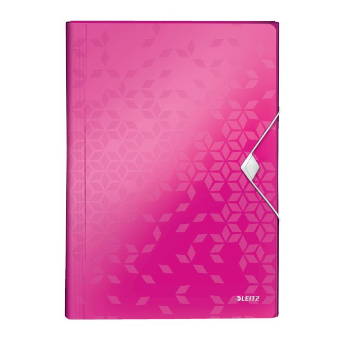Aktovka z polypropylénu na ukladanie a prenos dokumentov do formátu A4. V dizajne WOW v žiarivých farbách. Atraktívne uzatváranie na gumičku, šesť roztiahnuteľných priehradok s indexami na popis obsahu, jedna priehradka na voľne vložené listy do formátu A4, vrecko na vizitky. Kapacita 250 listov. Väčšie balenie 5 ks. Farba metalická ružová.