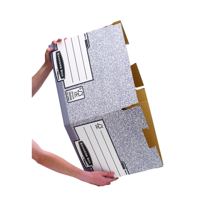 Veľká archívna krabica s odnímateľným vekom a bočnými výrezmi na uchytenie. Vhodná aj na archívne boxy. Steny spevnené zdvojenou vrstvou kartónu. Nosnosť 35,2 kg. Možnosť navyšovania do troch úrovní. Dodávaná v rozloženom stave naplocho. Väčšie balenie 20 ks. Farba sivá/-biela. Rozmery v cm: 38x28,7x43 Farba: sivá/biela