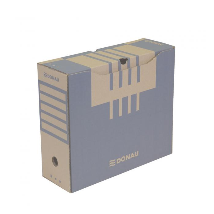 Archívny box z trojvrstvovej lepenky s certifikátom FSC® (drevo na jej výrobu pochádza z lesov, obhospodarovaných udržateľným spôsobom), bez obsahu kyseliny (pH 7,5). Vhodný na archiváciu dokumentov do formátu A4 s otvorom na ľahkú manipuláciu. Možnosť archivovať aj zakladač Donau. Predtlače na popis na dlhšej i kratšej strane umožňuje skladovanie vo vodorovnej aj zvislej polohe. Box je využiteľný samostatne alebo v kombinácii s archivačnými krabicami. Gramáž 390 g. Rozmery 297x120x339mm. Väčšie balenie 20 ks.