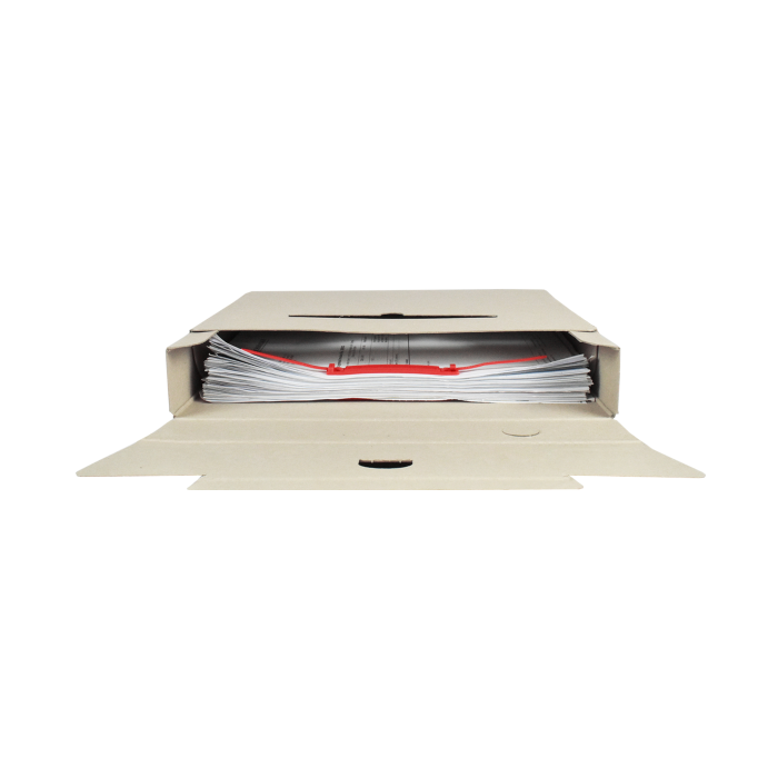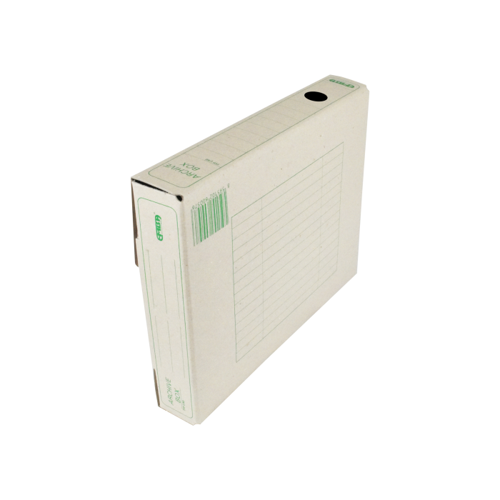 Ekologický výrobok. Box z recyklovateľnej špeciálne impregnovanej lepenky odolnej voči atmosferickej vlhkosti na dlhodobé uloženie záznamov. Tri varianty postavenia, kvalitná sieťotlač. Vhodný v kombinácii so skupinovým boxom. Väčšie balenie 25 ks. Rozmery (š x v x d) 50 x 330 x 260 mm.