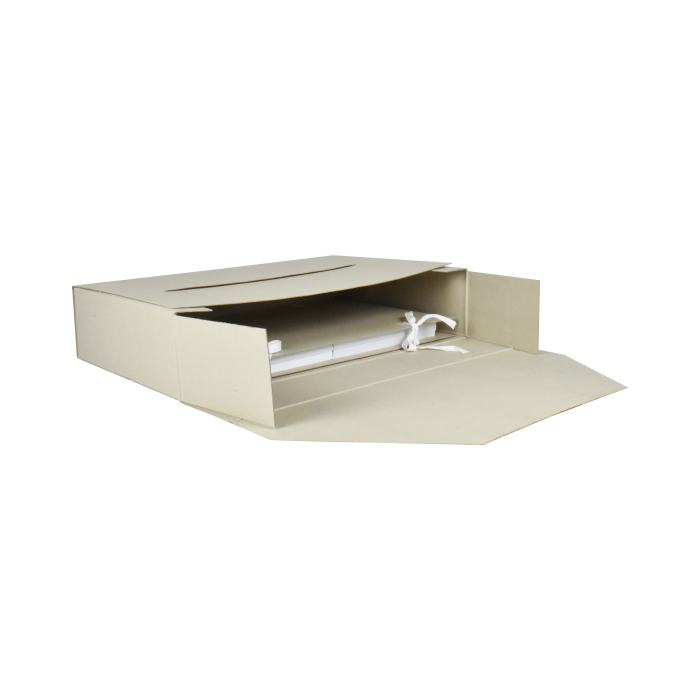 Škatuľa pre náročnú archiváciu - obal na odovzdanie dokumentov so znakom `A` do Štátneho archívu. Vyrobená z hladkej archívnej lepenky.
