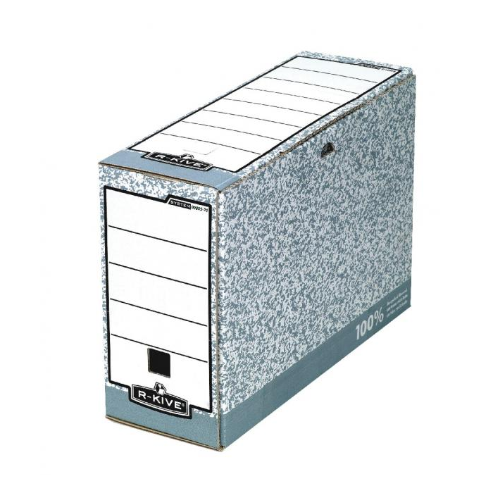 Základný prvok na archiváciu dokumentov formátu A4. Box popisovateľný na chrbte a veku. Šírka chrbta 105 mm. Rozmery (Š × V × D) 105 × 260 × 325 mm. Dodávaný v rozloženom stave. Väčšie balenie 20 ks. Farba sivá/ biela.