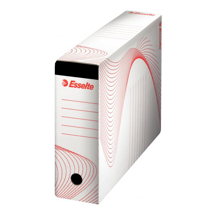 Škatuľa určená na archiváciu dokumentov v závesných obaloch. Šírka chrbta 116 mm. Otvor pre ľahké uchopenie, potlač na kratšej i dlhšej strane umožňuje archiváciu vo vodorovnej i zvislej polohe. Balenie 10 ks. Kapacita 10 závesných obalov. Rozmery (š x v x h): 117 x 285 x 337mm Farba: biela/červená