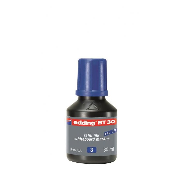 Atrament slabého zápachu vo fľaštičke s kvapkovým dávkovačom na dopĺňanie popisovačov edding 250, 361 a 365, určených na biele tabule. Tento chemický prípravok je nebezpečný. Obsah fľaštičky 30 ml.