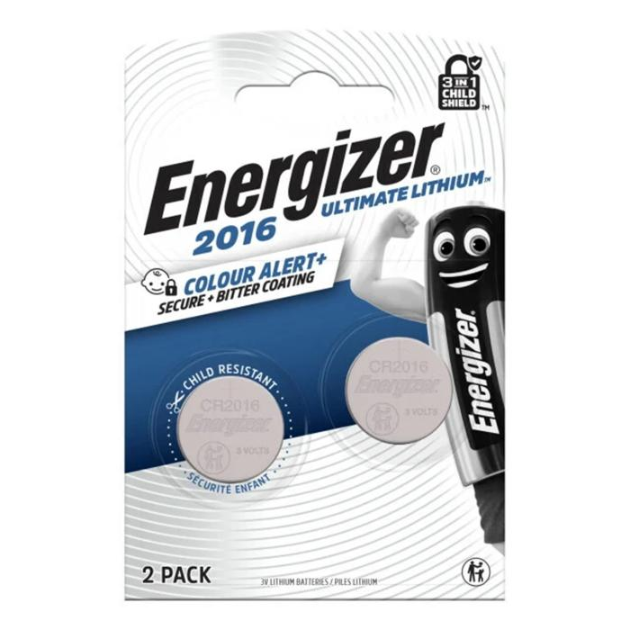 Špeciálna gombíková batéria Energizer Ultimate Lithium CR2032 BP2 pre energeticky náročné prístroje s ochranou proti poškodeniu obalu, ochranou proti rozbaleniu deťmi a technológiou umožňujúcou podávať výkon v extrémnych podmienkach od -30 °C do + 60 °C. Vhodné: do kľúčeniek, do diaľkových ovládačov alebo do glukomerov či srdcových monitorov, hier, hračiek, bezkľúčových vstupných systémov. Obsahuje novú technológiu Color Alert - zafarbí ústa na modro niekoľko sekúnd po kontakte so slinami, aby naznačila možné požitie. Netoxický horký povlak pomáha odradiť od požitia, zatiaľ čo bezpečné balenie je takmer nemožné otvoriť bez nožníc. Obsahuje prvý detský štít 3 v 1 na svete s tromi obrannými líniami: Color Alert, horká vrstva a bezpečné balenie. Balenie 2 ks.