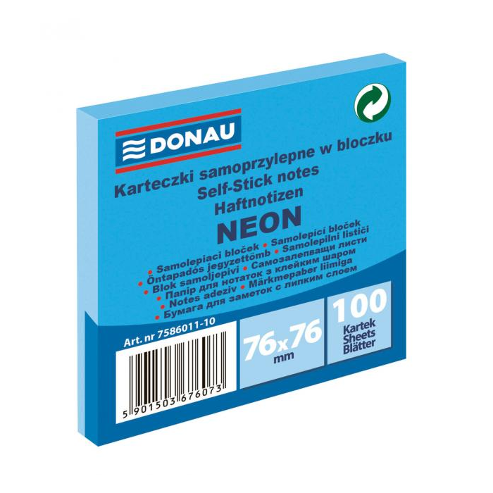 Univerzálne neónové samolepiace bločky z papiera gramáže 70 g / m², 100-lístkové, jednotlivo balené. Lepidlo zmývateľné vodou. Udelený Green Point za účasť na recyklácii a zhodnocovaní odpadov vyplývajúcich z ustanovení nariadení EÚ. Väčšie balenie 12 ks. Farba modrá.