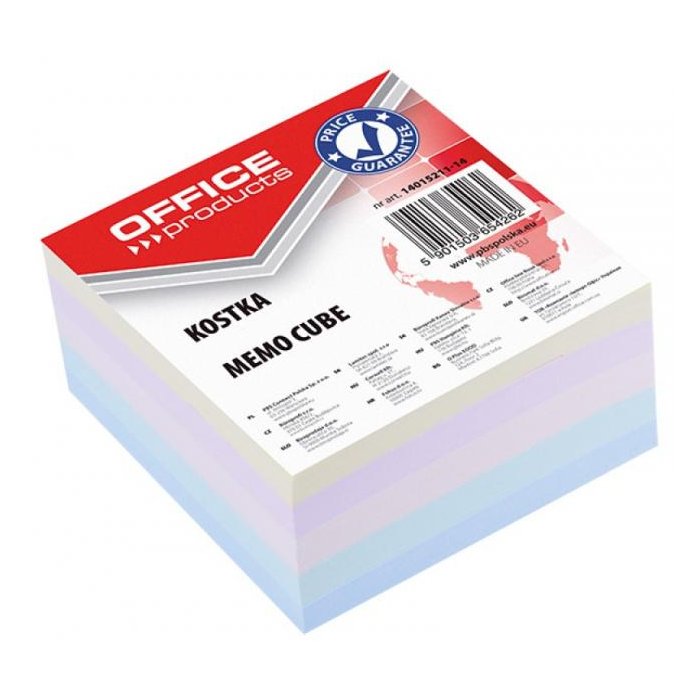 Blok kocka OFFICE products, lepená pastelová, 85 ×85 ×40 mm