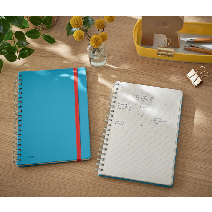 Značková kolekcia Leitz Cosy vám umožní cítiť sa ako doma, nech už vás váš pracovný deň zavedie kamkoľvek. Vďaka minimalistickému dizajnu a lákavej matnej povrchovej úprave pridáte svojmu pracovnému priestoru štýl a farbu. Zápisník Leitz Cosy veľkosti L (B5) je ideálny na každodenné písanie poznámok, pohodlne sa zmestí do tašky alebo batohu k notebooku. Tento zápisník s hebkým príjemným povrchom v prvotriednej kvalite je perfektným doplnkom vášho domova alebo kancelárie, pracovať s ním je radosť. Farba modrá.