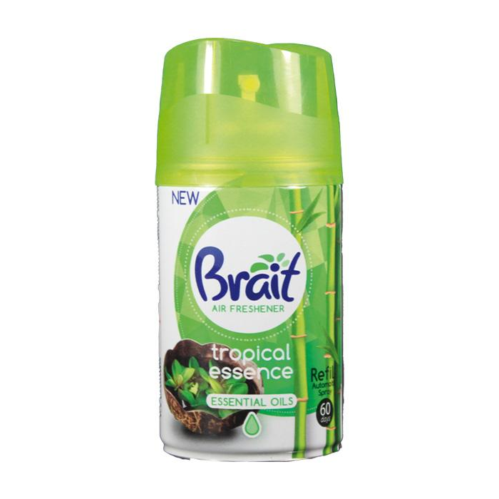 Náhradná náplň do automatického osviežovača vzduchu značky Brait Tropical essence s vôňou, ktorá Vás zavedie v predstavách do trópov.