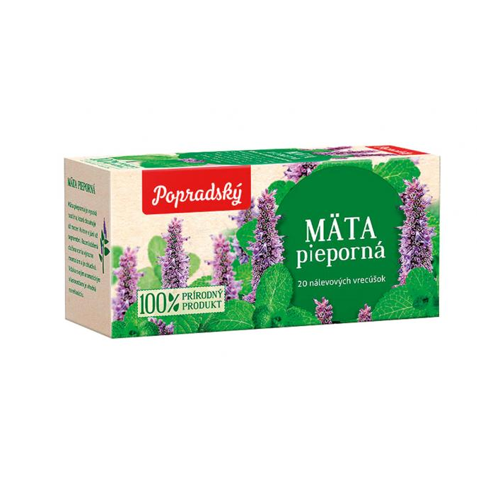 Bylinný čaj - mäta pieporná. Porciovaný v nálevových vreckách.