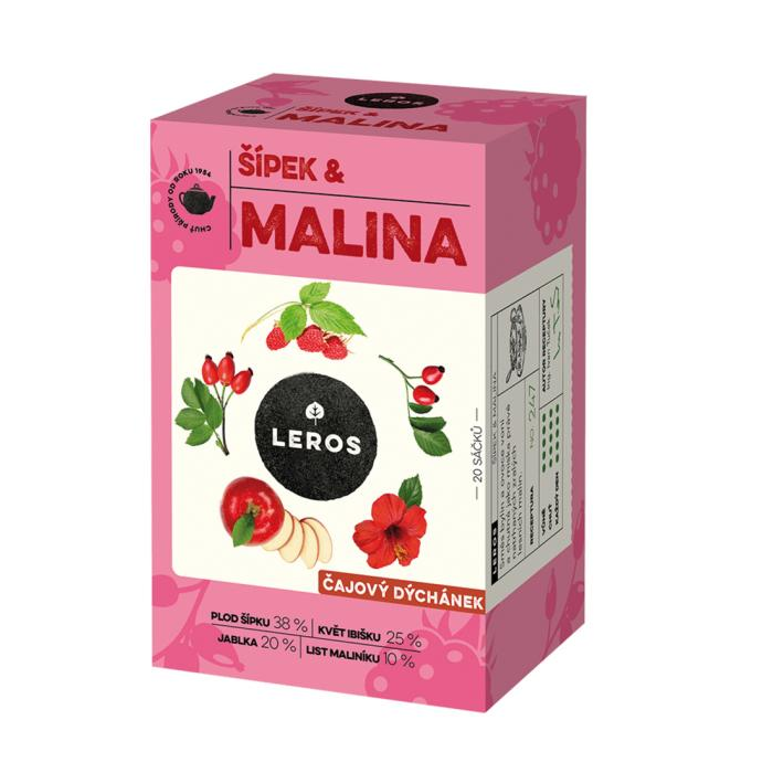 Čaj LEROS bylinný Čajová chvíľka šípka & malina HB 20 x 2 g