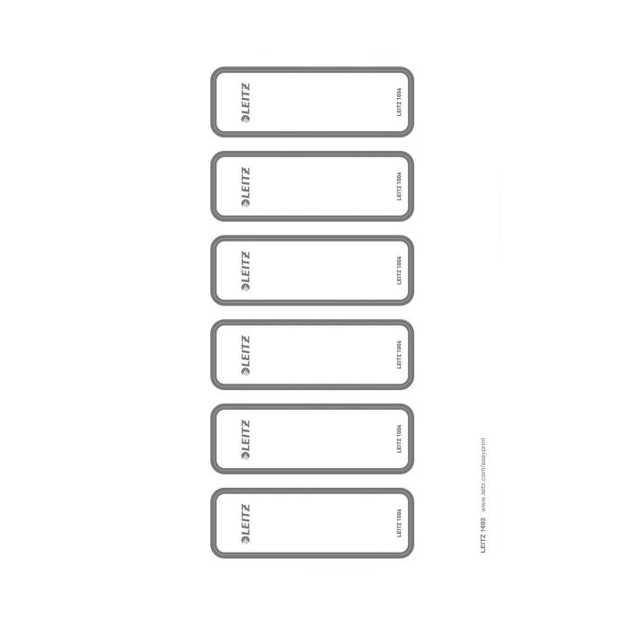 Samolepiace potlačiteľné chrbtové štítky, ktoré uľahčujú a sprehľadňujú popis zakladačov Leitz WOW. Úzke 50 mm, pre úzky pákový zakladač Leitz 180° WOW (1006). Štítky sú perforované na hárku A4 pre jednoduchšiu manipuláciu. Navrhnite a vytlačte si svoj štítok na www.esselte.com/easyprint . 1 balenie = 10 hárkov (60 štítkov). Vhodné do laserových i atramentových tlačiarní a kopírok. Faba biela.