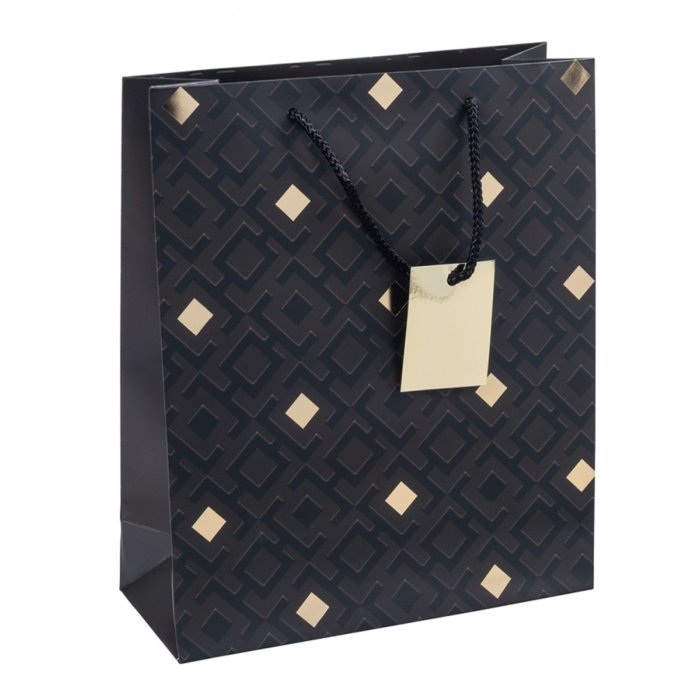 Darčeková taška DONAU HOME: - ideálna na balenie darčekov - rôzne dizajny vám umožňujú zladiť ju s každou príležitosťou - od narodenín až po sviatky a výročia - vďaka laminovanému, matnému povrchu sa vyznačuje väčšou odolnosťou voči poškodeniu a dlhodobo si zachováva elegantný vzhľad - vyrobená z papiera s gramážou 210 g/m² - pevná šnúrková rukoväť z polypropylénu zaisťuje pohodlné nosenie - s visačkou 5 x7 cm, ktorú možno použiť ako miesto na venovanie - rozmery: 25 x 30 x10 cm