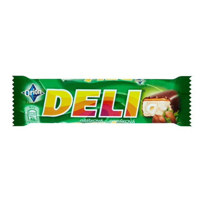 Tyčinka 51 % s lieskovými orechami 9 % a karamelom 15 % máčaná v horkej čokoláde 25 %. Najlepšie je zostať nad vecou. A s tyčinkou DELI vo vrecku to ide skutočne ľahko. Táto šťavnatá čokoládová tyčinka s jemnou konzistenciou a skvelými príchuťami vznikla už v roku 1980. Vychutnajte si preto tyčinku s jemne našľahanou nápňou s chrumkavými lieskovými orieškami a tenkou vrstvou karamelu v lahodnej horkej čokoláde.