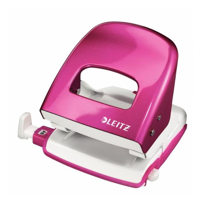 Pevná a spoľahlivá celokovová dierovačka rady WOW v žiarivej farbe. Telo aj rameno vyrobené z kovu, protišmykové plastové dno. Pohodlné vyprázdňovanie odrezkov (dno sa odklopí iba čiastočne), príložník s kontrastnou potlačou formátov, pevná fixácia, patentovaná úchytka a ostrejšie dierovacie segmenty pre vynaloženie menšej sily pri dierovaní. Kapacita dierovania 30 listov. Hmotnosť 378 g. 10 ročná záruka.