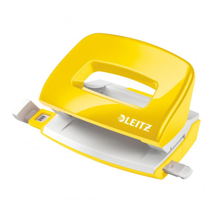 Odolná, praktická zošívačka s ergonomickou rukoväťou a v módnych farbách na použitie v kancelárii, doma alebo na cestách. Patentovaná príchytka a ostré dierovacie segmenty znižujú silu nutnú na dierovanie. Vhodná na použitie v ruke. Farba žltá.