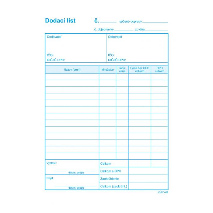 Obchodné tlačivo. Dodací list s DPH, samoprepis, A5, 100 listov.