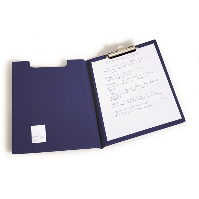 Dosky vyrobené zo spevneného mäkkého PVC. Vrecko po celej dĺžke vnútornej strany predného obalu. Vhodné na dokumenty formátu A4.