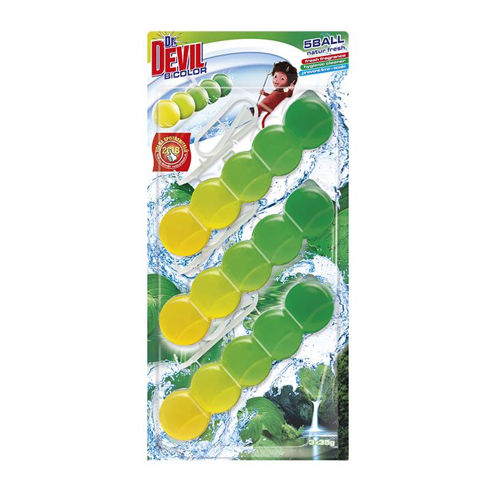 Dr. DEVIL WC závesný blok tuhý 5Ball 2in1 3x35g Natur Fresh