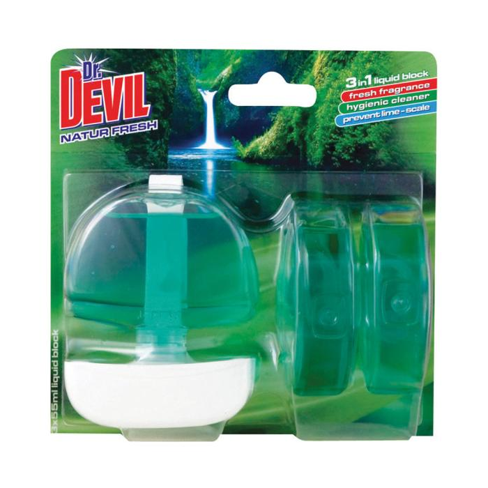 Dr. Devil WC blok Natur 3v1 - vonia, čistí a preventivne pôsobí proti usadzovaniu vodného kameňa.