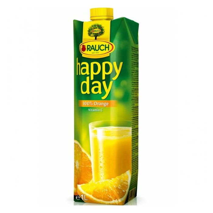 100% pomarančová šťava vyrobená z najkvalitnejších surovín bez prídavku cukru, pasterizovaná. Objedm 1 liter. Väčšie balenie 12 x 1 l. Rauch Happy Day Pomaranč 100% 1 L. ZLOŽENIE: 100% Pomarančová šťava vyrobená z koncentrátu. PODMIENKY SKLADOVANIA: Chráňte pred mrazom a priamym slnečným žiarením. Po otvorení uchovávajte v chlade a spotrebujte do 3 dní. VÝROBCA: Rauch Slovensko, s.r.o. Trnavská cesta 82 821 02 Bratislava.