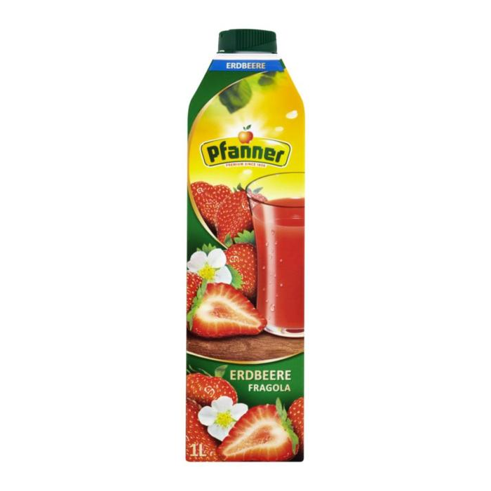 Vďaka svojej intenzívnej, sviežej vôni a žiarivej červenej farbe je jahoda „kráľovnou záhrady“. Jemná jahodová dužina - prevažne z vlastného spracovania - tvorí základ nášho lahodného hustého ovocného nápoja. Pfanner Jahoda odporúčame piť ako pôžitkový nápoj alebo ako ovocný základ v miešaných nápojoch a