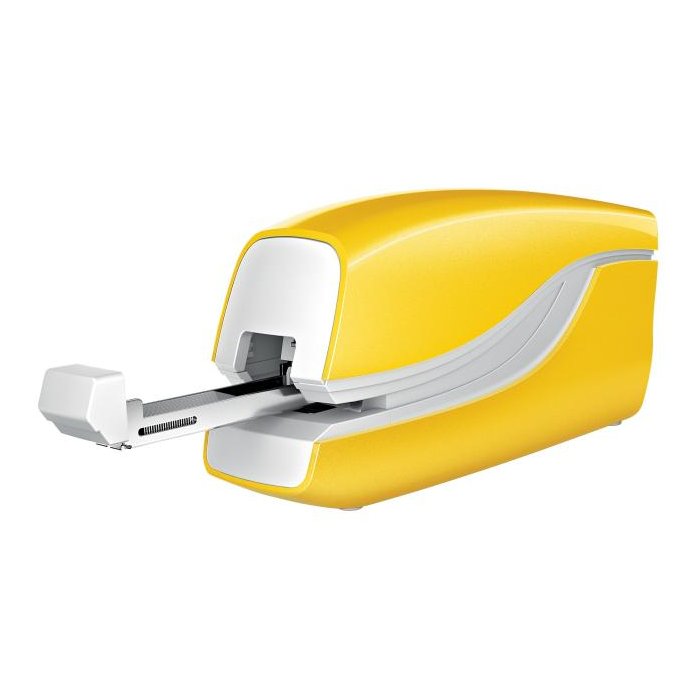 Elektrická zošívačka Leitz New NeXXt WOW. Vďaka jednoduchému ovládaniu jednou rukou je ideálna na časté používanie. Technológia s napájaním na batérie na zošívanie v pohybe. V žiarivých farbách WOW. Batérie (4× 1,5 V AAA LR03) nie sú súčasťou balenia. Kapacita 10 listov. Náhradné spinky ES556800. Farba žltá.