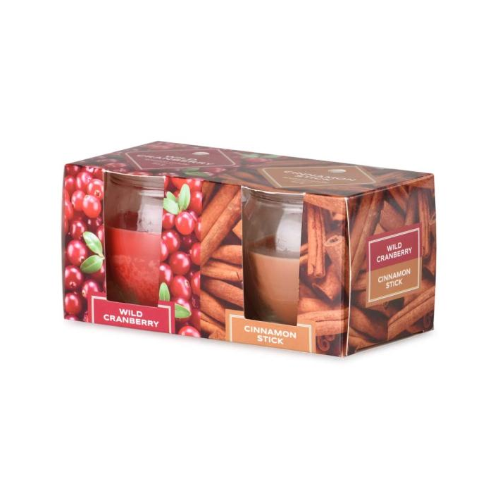 Emocio Sklo Wild Cranberry & Cinnamon Stick, vonná sviečka, 2 ks v krabičke, 65x63 mm