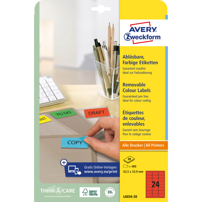 Odnímateľné samolepiace etikety STICK & LIFT odlepiteľné a znovu prelepiteľné (na bežnom povrchu až 5×) bez toho, aby zanechali stopy lepidla. Sú vhodné pre všetky druhy tlačiarní a kopíriek. Využiteľné najmä na každodenné pracovné činnosti, ako napr. vytváranie popisov, cenoviek, označovanie výrobkov, majetku a pod. Farba červená. Etikety na hárku 24 ks. Balenie 20 hárkov. Rozmery 63,5 x 33,9 mm.