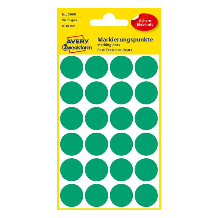 Etikety kruhové 18mm Avery zelené