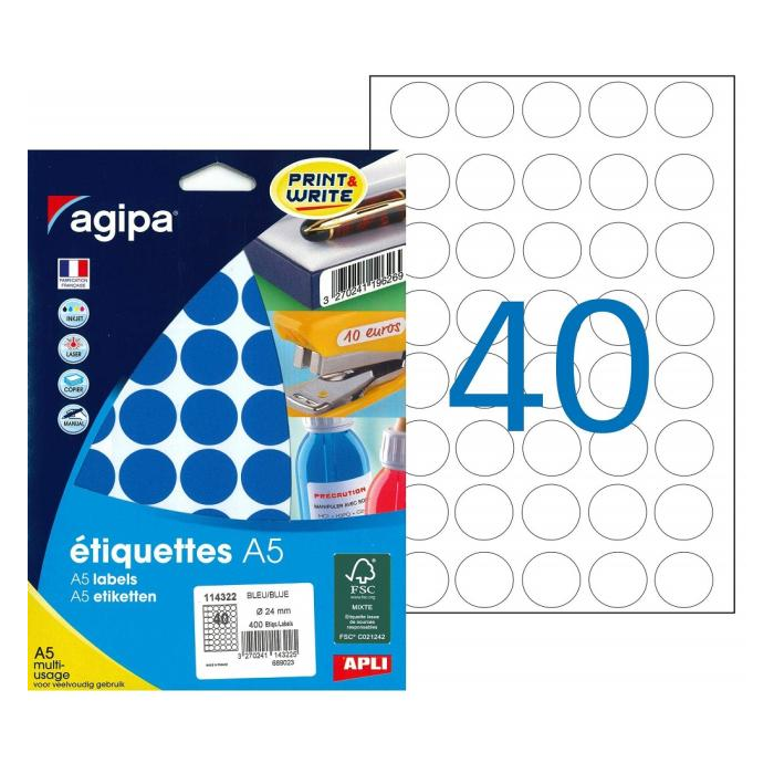 Etikety kruhové 24mm Agipa A5 modré