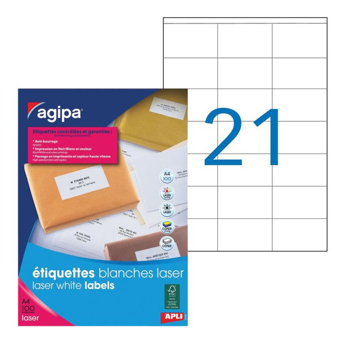 Etikety laser 70x42mm Agipa A4 100 hárkov