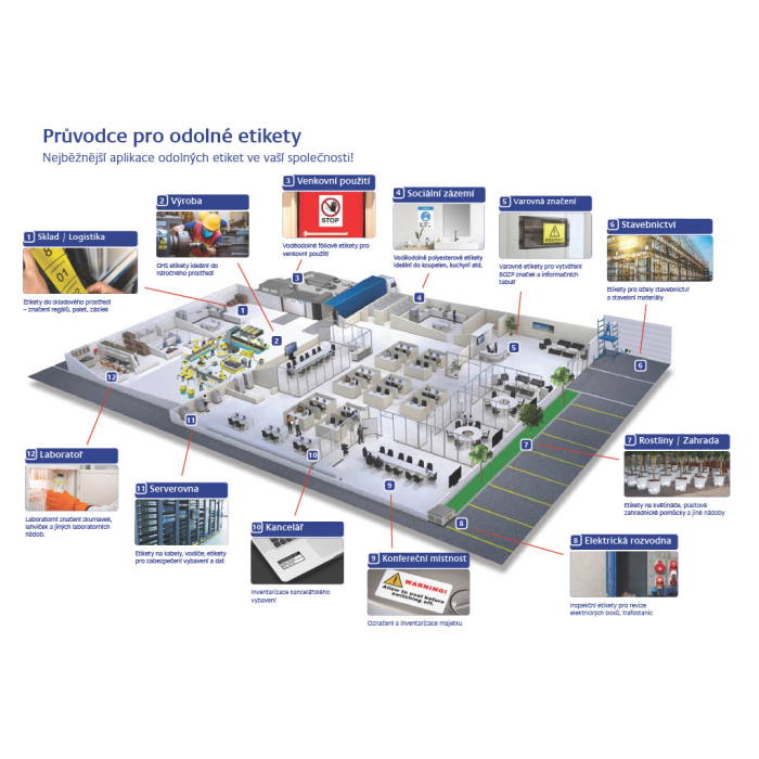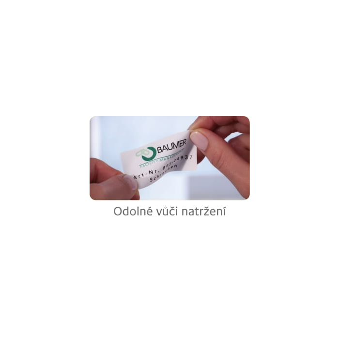Veľmi odolné polyesterové etikety odolné voči oleju, prachu, špine, natrhnutiu, vode. Odolávajú teplotám od −40 ° do + 150 °C. Určené pre tlač v laserových tlačiarňach. Vhodné aj pre vonkajšie použitie. Rozmery v mm : 25,4 × 10. Farba strieborná. Etikety na hárku 189 kusov. Balenie 20 hárkov.