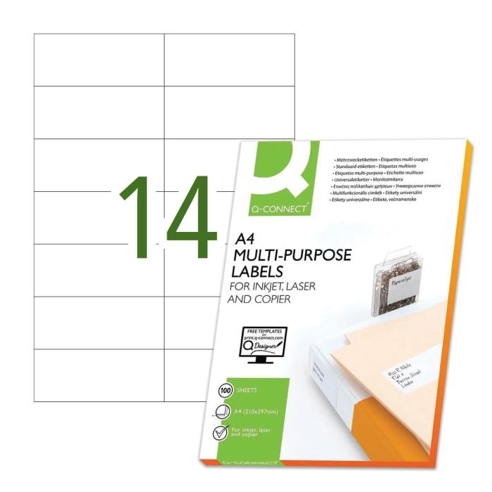 Etikety univerzálne 105x42,3mm Q-CONNECT A4 100 hárkov