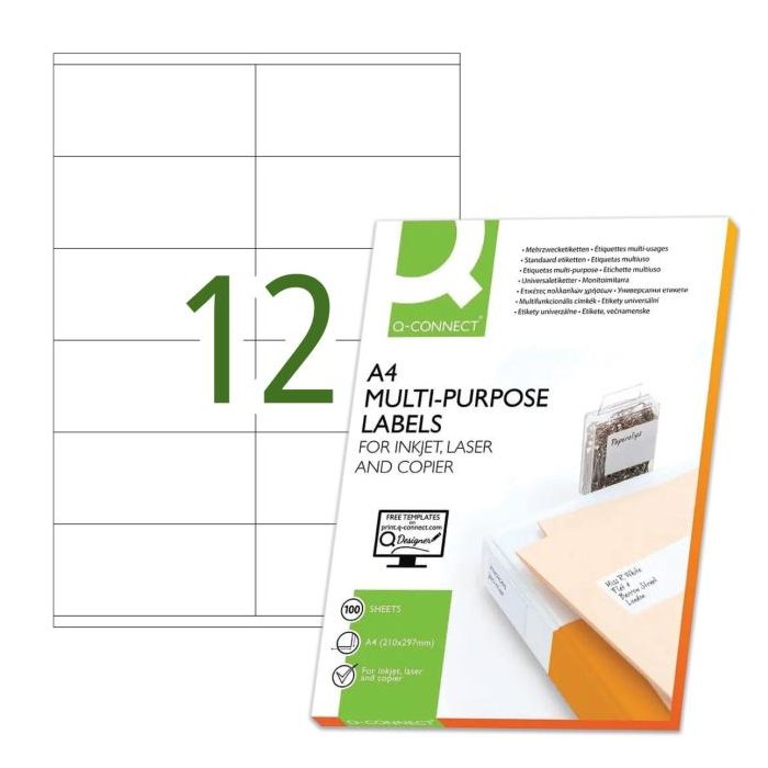Etikety univerzálne 105x48mm Q-CONNECT A4 100 hárkov