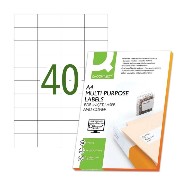 Etikety univerzálne 52,5x29,7mm Q-CONNECT A4 100 hárkov