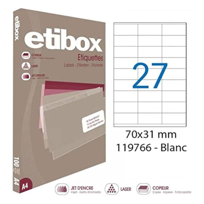 Cenovo výhodné etikety vhodné do laserových a atramentových tlačiarní, ako aj kopírovacích strojov. Rozmery: 70 x 31 mm Počet etikiet: 2700 Balenie: 100 hárkov
