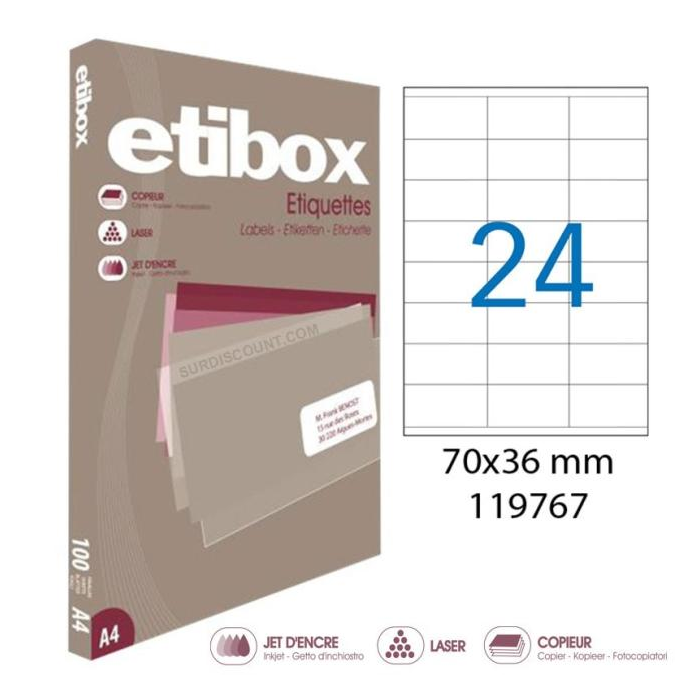 Etikety univerzálne 70x36mm Etibox A4 100 hárkov