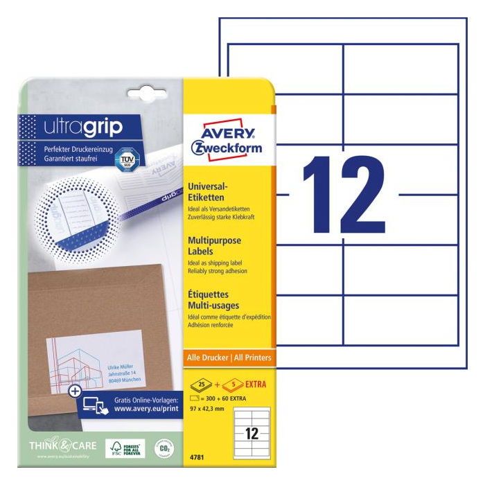 Biele univerzálne etikety vhodné na každodenné použitie v atramentových a laserových tlačiarňach a kopírovacích strojoch. Vďaka inovatívnej technológie ultragrip sa môžete spoľahnúť na bezchybné natiahnutie archu a tlač bez zasekávania. Bezpečnostný okraj QCT zabraňuje zanášaniu tlačiarne lepidlom. Pre laserové tlačiarne testované