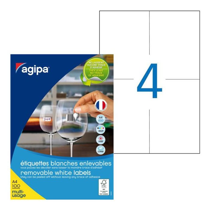 Etikety univerzálne odnímateľné 105x148mm Agipa A4 100 hárkov