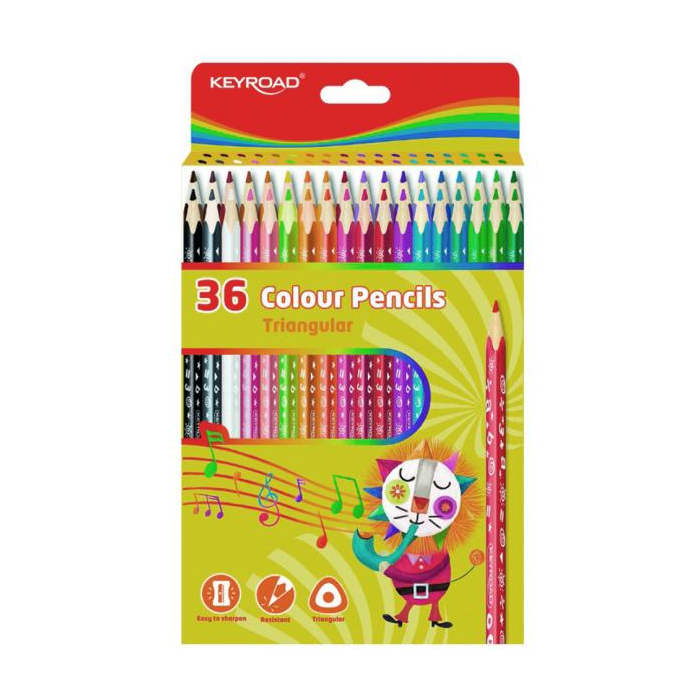Trojuholníkové ceruzkové pastelky, ideálne na omaľovánky, mäkký grafit, ľahko sa ostria. V sade 36 farieb. Balenie: v krabici. Farba: mix farieb.