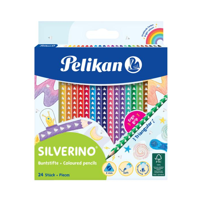 Farbičky Pelikan Silverino trojhranné tenké, sada 24 ks