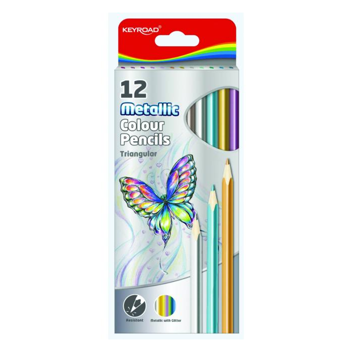 Farbičky trojhranné metalické KEYROAD, 12 farieb