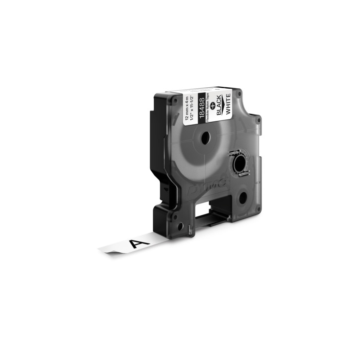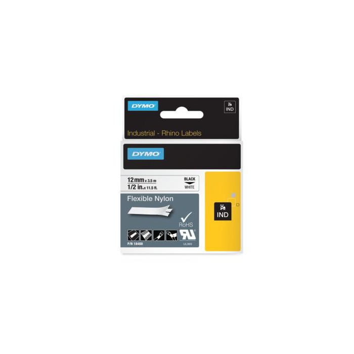 Pásky z flexibilného nylonu sú určené do etiketovacích zariadení DYMO radu Rhino a LM s aplikáciou v uzavretých priestoroch. Sú špeciálne vyvinuté na označovanie vodičov, káblov a strojov na zakrivené a rovné povrchy. Odolávajú rozdielom teplôt a ultrafialovému žiareniu. Dĺžka pásky 3,5 m. Farba pásky biela, čierne písmo. Šírka pásky 12 mm.