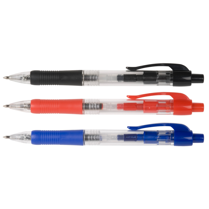 Klikacie guľôčkové pero s klipom a pogumovaným gripom pre lepšie držanie. Hrot 1 mm, šírka stopy 0,7 mm. Väčšie balenie 10 ks v jednej farbe. Farba náplne: čierna