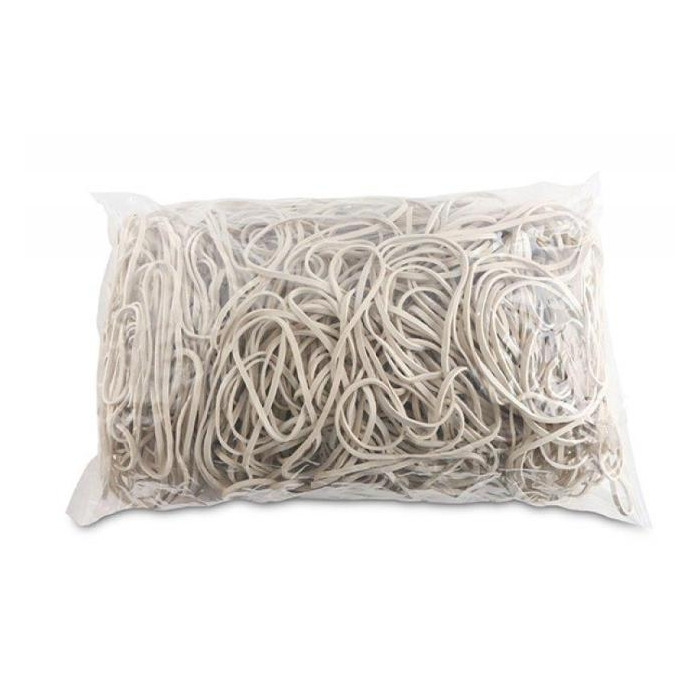 Odolné a pružné gumičky vyrobené z materiálu s prímesou gumy (60 %). Rozmery (hrúbka × šírka) 1,5 × 3 mm. Priemer 80 mm. Farba biela.