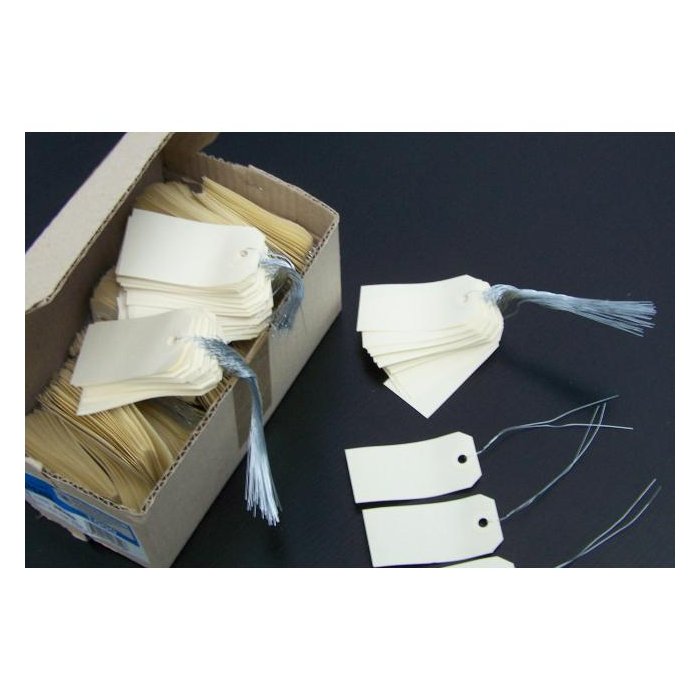 Štítok s očkom a drôtikom na pripevnenie pre potreby označovania materiálu alebo tovaru, kde nie je možné upevniť lepiacu etiketu z dôvodu drsného povrchu, malej plochy alebo pre prepravné účely na označenie balíkov. Štítok je možné priamo popisovať alebo naň lepiť etiketu.