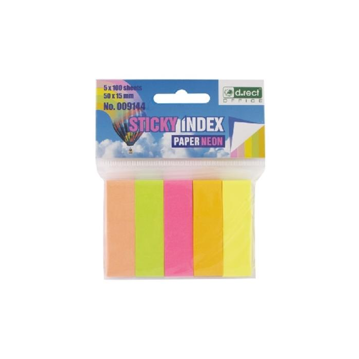 Praktické indexovacie záložky určené na označovanie stránok v dokumentoch, knihách, katalógoch atď. Výber z 5 neónových farieb, ktoré pomáhajú kategorizovať a organizovať informácie. Záložky sú vhodné aj na uloženie krátkych informácií, ako je telefónne číslo alebo cena. Stabilné lepidlo umožňuje prilepiť a odstrániť štítok viackrát bez poškodenia povrchu. Každá sada obsahuje 5 neónových farieb, 100 listov papiera v kartónovom zásobníku. Veľkosť jednej záložky je: 15 x 50 mm.