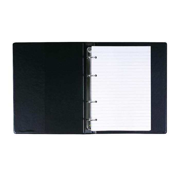 Karisblok so 4-krúžkovým mechanizmom, dodávaný vrátane 100 listov s linajkami. Materiál PVC. Formát A5. Rozmer : 183 x 231 x 30 mm. Farba čierna. Väčšie balenie 15 ks. Úprava: linajková Počet listov: 100
